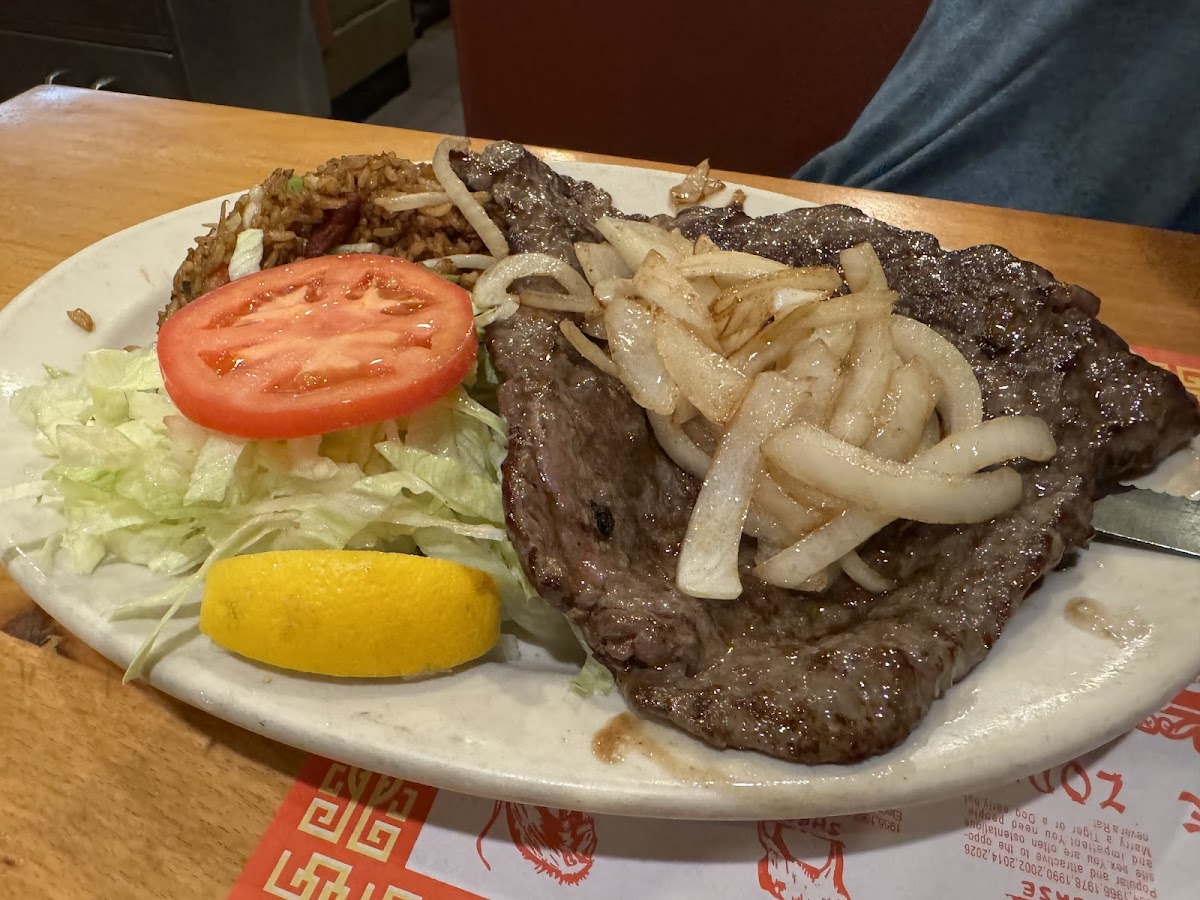 I ate here for lunch today and I got the chicken with pork fried rice and salad it was empty we went but when we left it got a bit more crowded the food was good and service was exceptional. Other than that everything was good!